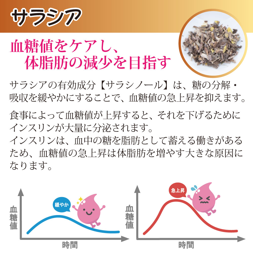 糖質の吸収を緩やかにし、血糖値上昇をケアする「サラシア」、