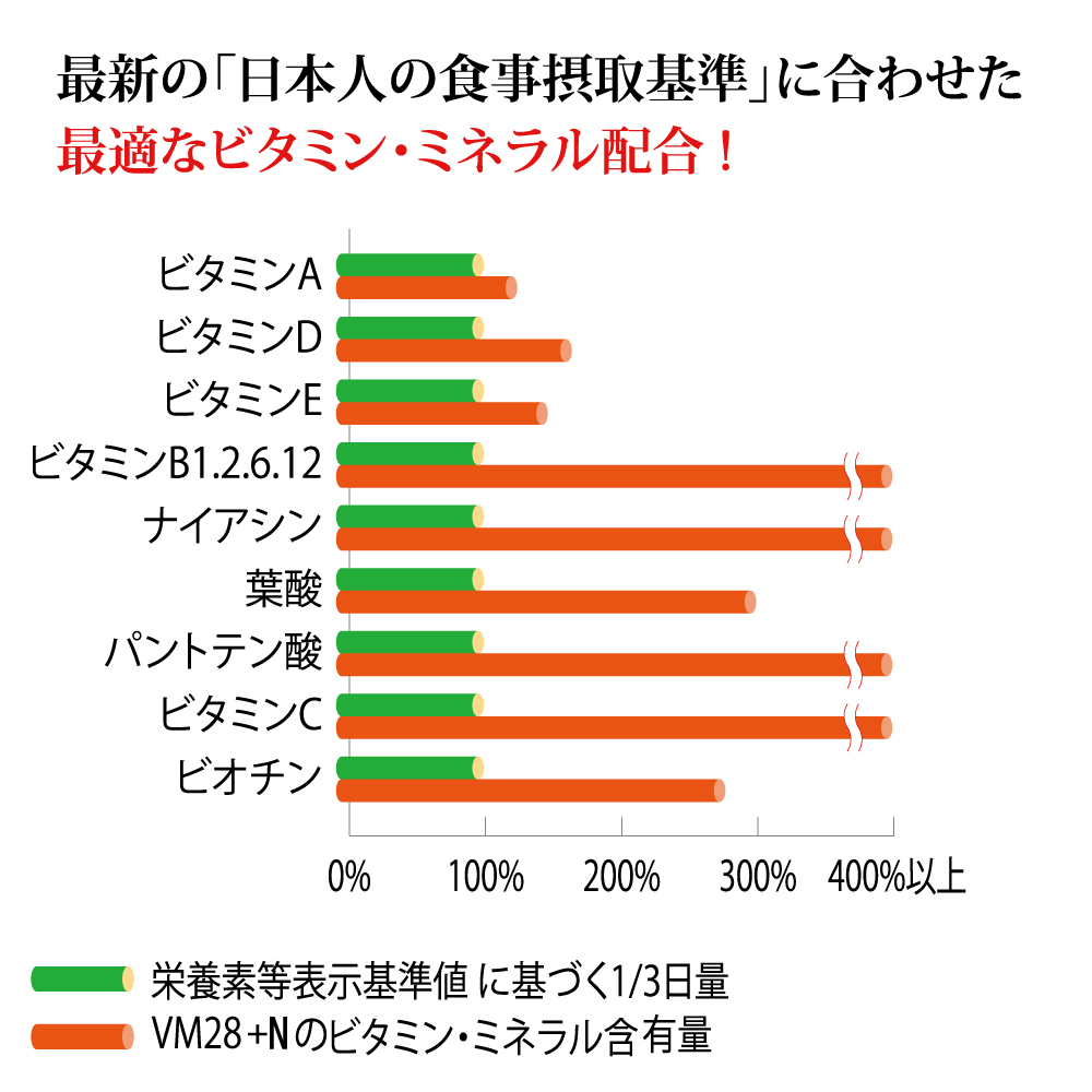 1日に必要なビタミン・ミネラルをギュッと凝縮 !【VM28+N】